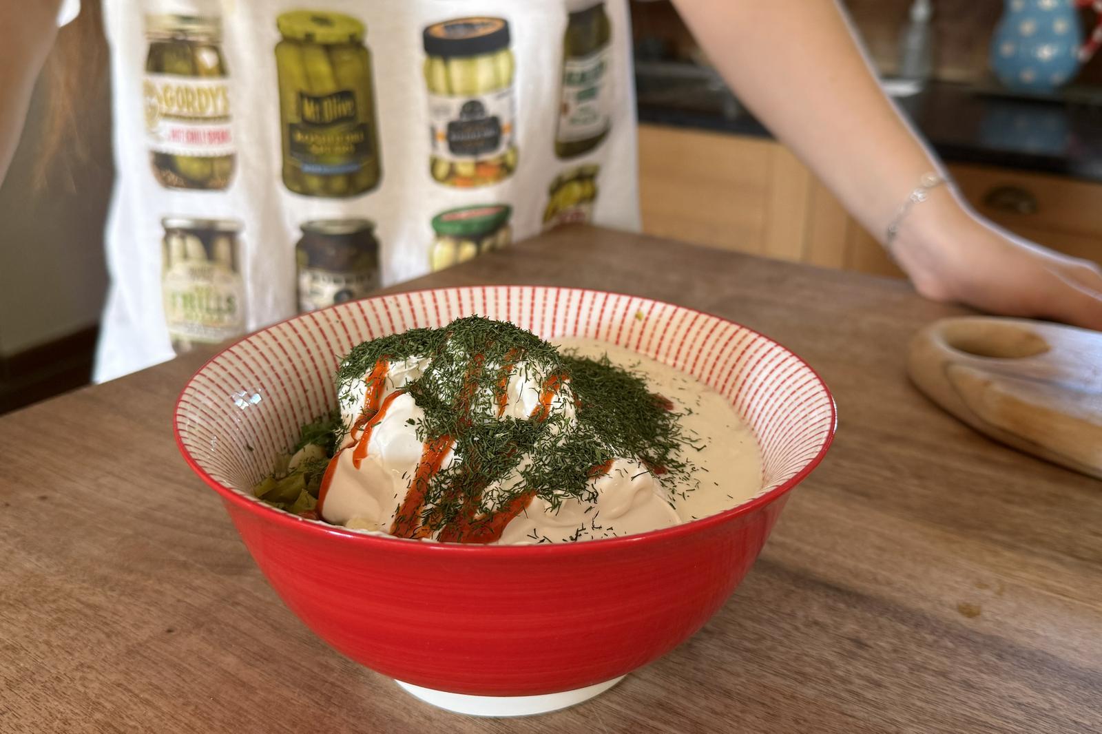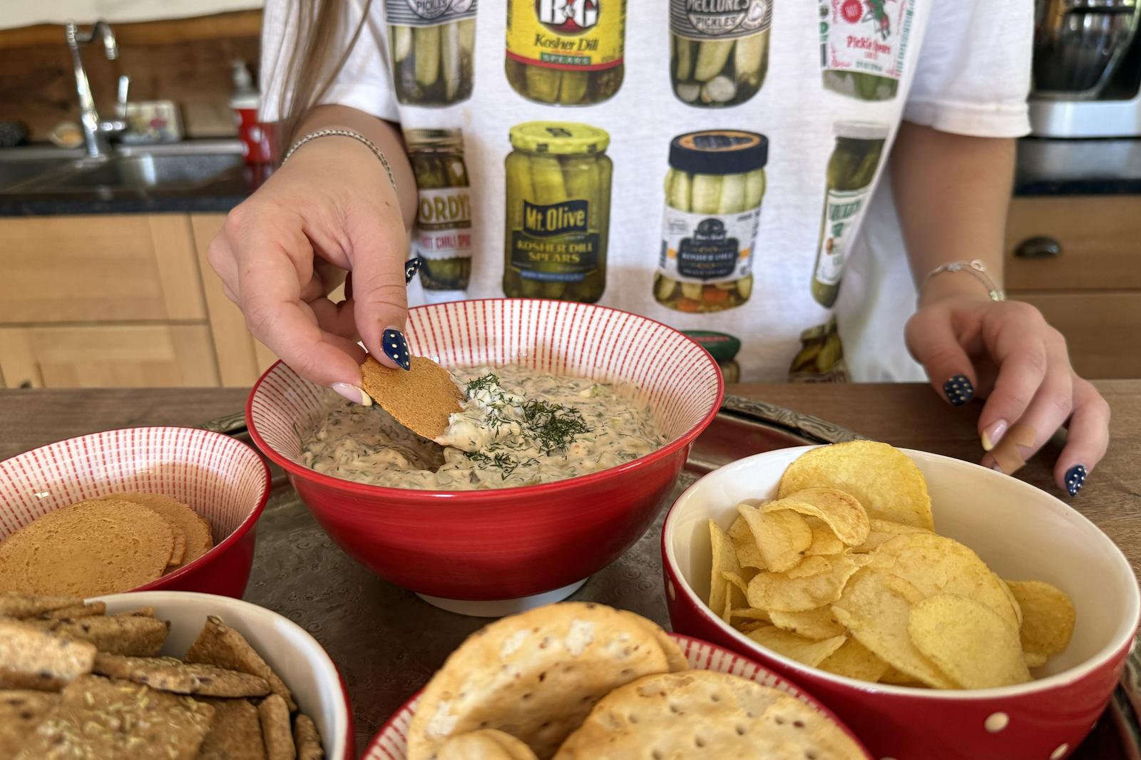 Clara hat sich bei verschiedenen Versionen dieses viralen Pickle-Dips inspirieren lassen und das ist nun ihre eigene, vegane Version, die ich freundlicherweise für meinen Blog nutzen darf!